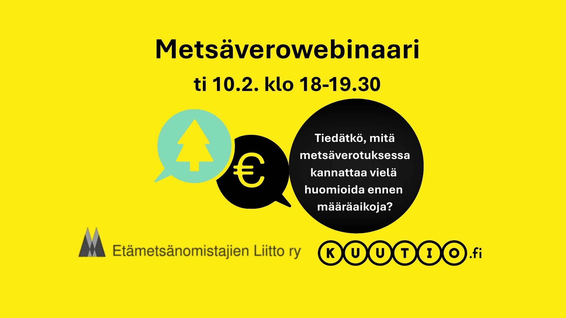 Kuutio ja Etämetsänomistajien Liitto järjestävät maksuttoman metsäverowebinaarin, jossa käydään läpi metsäverotuksen keskeiset periaatteet, ajankohtaiset muutokset sekä käytännön vinkit veroilmoituksen täyttämiseen. Mukana webinaarissa on Metsäkeskuksen metsänomistuksen asiantuntija Esa Lappalainen. Sisältö on suunnattu erityisesti metsänomistajille, jotka haluavat varmistaa, että perusasiat ovat kunnossa.